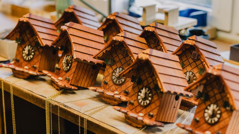 In der von Clute geleiteten Fabrik kommen Teile wie das Uhrwerk immer noch aus der unmittelbaren Nachbarschaft. Nötig sind unter anderem Zeiger, Zifferblatt, Gewichte und der Vogel. Geschnitzt wird im eigenen Haus – das Lindenholz dafür lagert in einer großen Halle.
