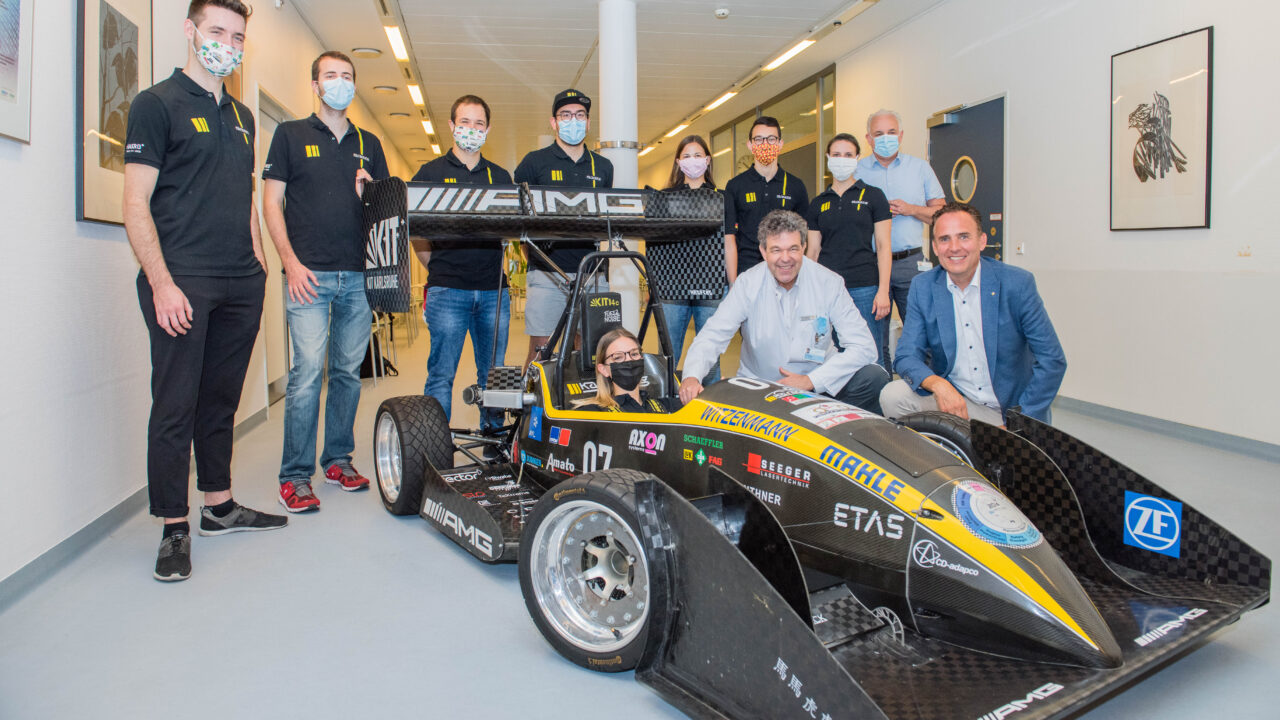 Die KIT-Hochschulgruppe KA-RaceIng e.V. hat am Montag, den 22. Juni 2020 ihren selbst konstruierten Rennwagen an das Städtische Klinikum Karlsruhe übergeben. Im Ambulanzbereich der Neurochirurgischen Klinik steht der preisgekrönte Flitzer ab sofort!