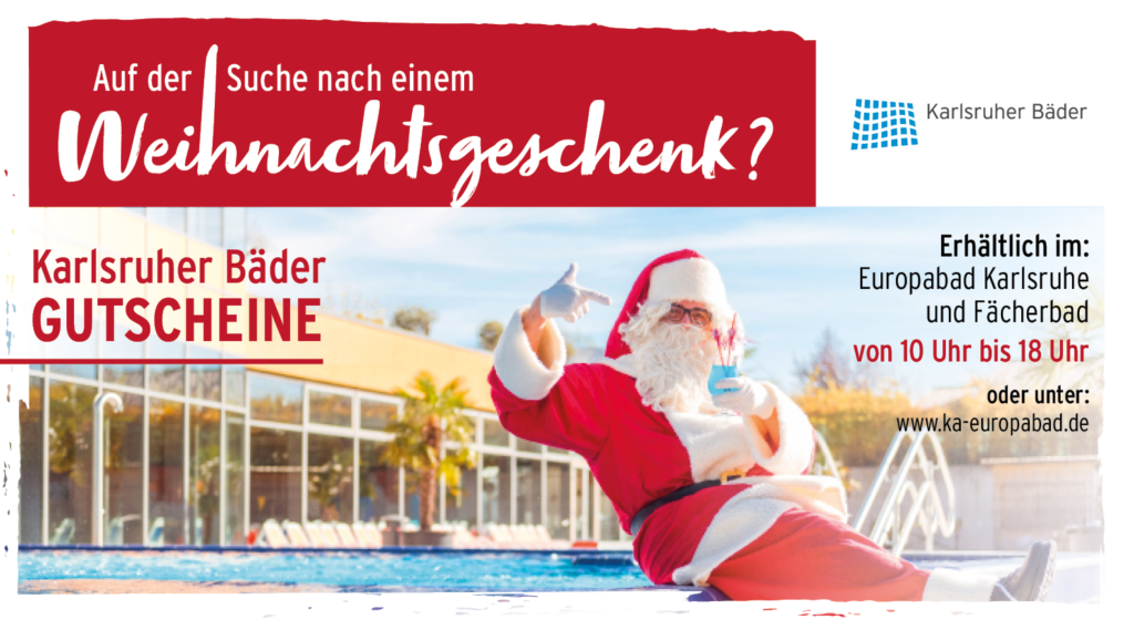 Es ist Adventszeit in Karlsruhe und meinKA hat einen Adventskalender mit 24 Überraschungen. Jeden Tag sponsert ein anderes Karlsruher Unternehmen einen Gewinn im Türchen. Heute gibt es einen Tageseintritt in das Europabad Karlsruhe zu gewinnen.
