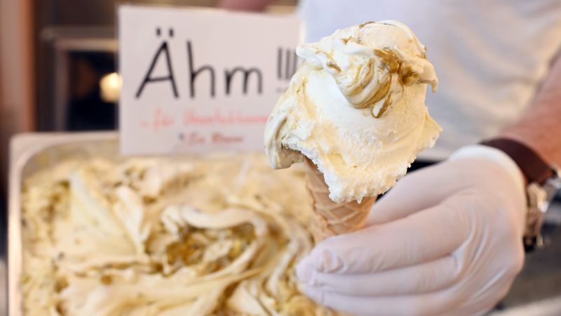 Er kreierte ein Milcheis aus weißer Schokolade, vermischt mit Pistazien-Crunch. «Sieht aus wie Eisbergsalat», sagt er. Und sei so lecker, dass «Ähm» in seiner Eisdiele hinter Vanille das derzeit am meisten verkaufte Eis sei. «Schmeckt Kindern und Erwachsenen», sagt er.