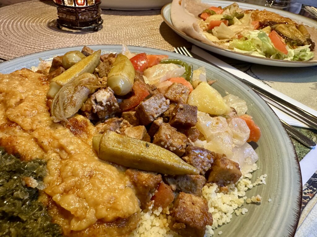 Die Speisekarte ist reichhaltig und auch Vegetarier kommen hier voll auf ihre Kosten. Sowohl Couscous als auch das traditionelle Fladenbrot Ingera sind hausgemacht. Beides darf in der afrikanischen Küche nicht fehlen.