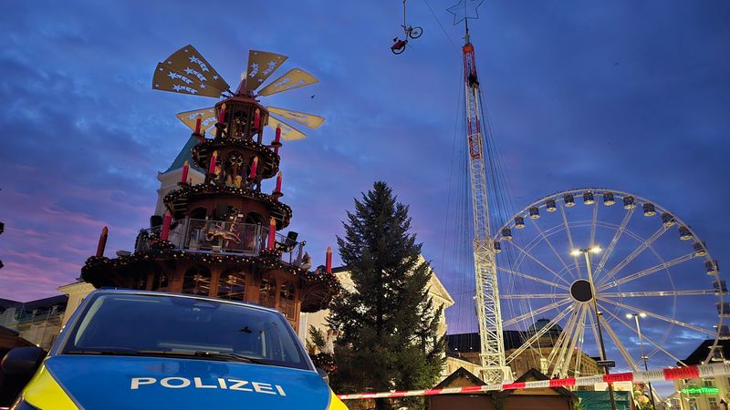 Polizeieinsatz am Marktplatz: Zwei Männer erklimmen das Hochseil des Christkindlesmarkts. Später steigen sie freiwillig wieder hinunter. Was wollten sie erreichen?