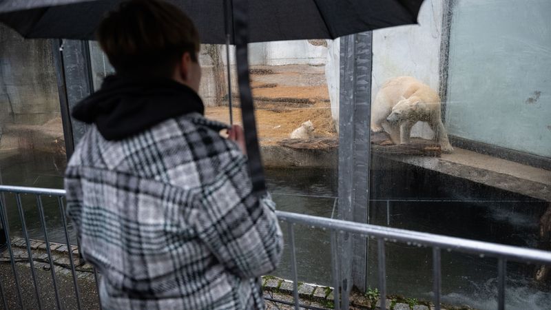 News Andrang trotz Regenwetter: Viele Zoo-Gäste wollen Karlsruher Eisbär-Baby sehen