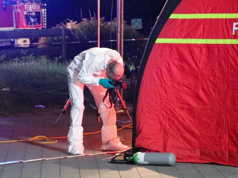 Bei dem Getöteten handele es sich um einen 38 Jahre alten Syrer. Verletzt wurden demnach vier Frauen im Alter zwischen 28 und 34 Jahren sowie ein 37 Jahre alter Mann. Bei ihnen handle es sich vermutlich um Mitbewohner, sagte ein Sprecher der Polizei. Mit Sicherheit könne er das aber noch nicht sagen. Von den Verletzten wurde eine Person mit einem Rettungshubschrauber in ein Klinikum gebracht. Die anderen Verletzten kamen mit Rettungswagen in ein Krankenhaus.