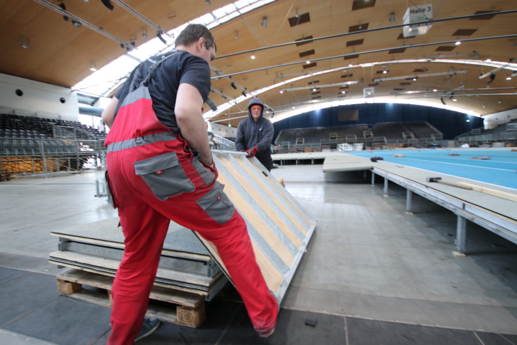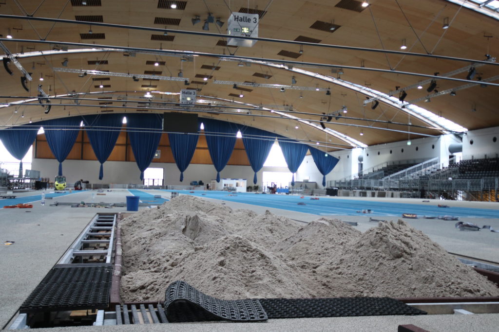 Am Freitag, den 31. Januar 2020 werden rund 5.000 Besucher die Welt-Elite der Leichtathletik in der Halle 3 der Karlsruher Messe in Rheinstetten anfeuern. Zunächst stehen allerdings umfangreiche Aufbauarbeiten an. meinKA durfte sich vorab umschauen.