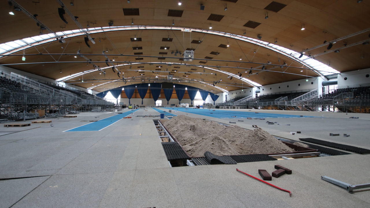 IAAF World Indoor Tour Aufbau beim INDOOR MEETING – zwischen Präzision & Zeitdruck