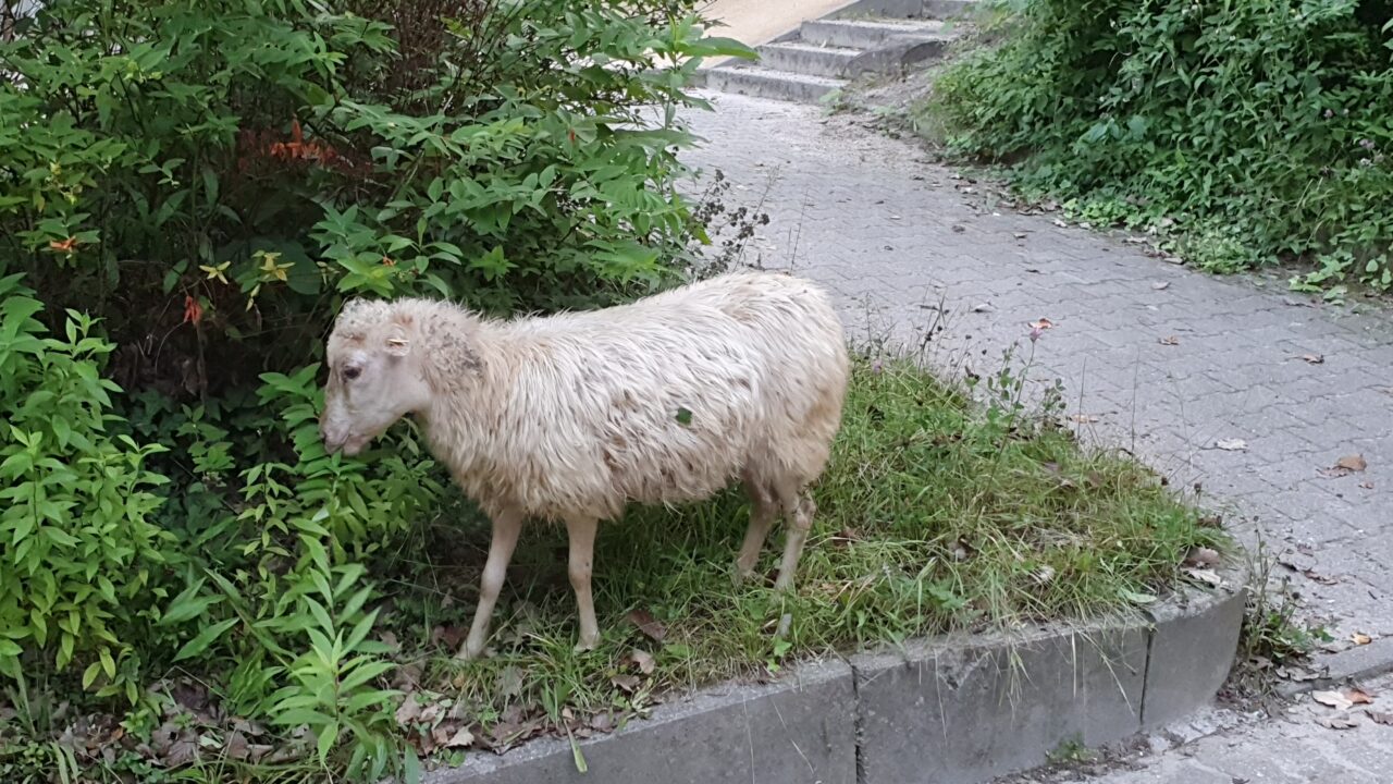 Ausgebüxtes Schaf in Karlsruhe unterwegs