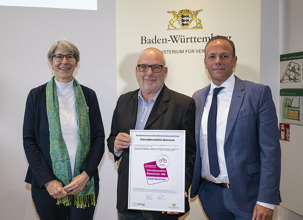 Wie die Stadt Karlsruhe mitteilt, erhielt Karlsruhe, gemeinsam mit drei weiteren baden-württembergischen Städten, vom Land die Zertifizierung als „Fahrradfreundliche Kommune“. Nach 2011 und 2017 ist es bereits die dritte Zertifizierung, aber zum ersten Mal mit dem Status Silber.