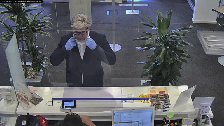 80.000 Euro Bargeld erbeutete Anfang Juli ein bislang unbekannter Betrüger, indem er sich mit einem gefälschten Personalausweis als vermeintlicher Kontoinhaber ausgab. Die Polizei veröffentlicht nun Bilder des Mannes und bittet die Bevölkerung um Hinweise.