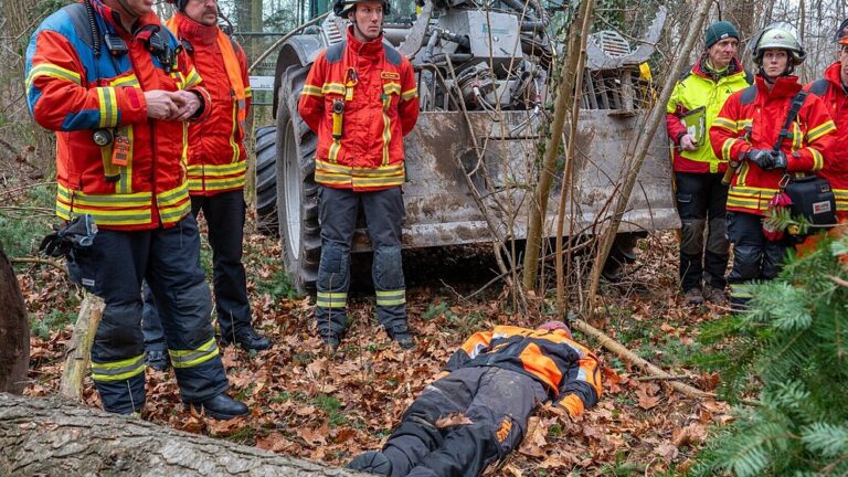 Die Waldarbeit zählt zu den gefährlichsten Berufen in Deutschland: Um die Abläufe zu üben und gegebenenfalls zu verbessern, haben die Berufsfeuerwehr Karlsruhe und das Forstamt der Stadt Karlsruhe gemeinsam ein Übungsszenario entwickelt und durchgeführt.