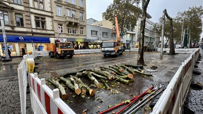In Vorbereitung der bevorstehenden Bauabschnitte der Maßnahme zur Neugestaltung Kaiserstraße werden am 17. Januar 2024, vier weitere Platanen im Bereich der Kreuzung Kaiserstraße und Adlerstraße gefällt. Die Arbeiten dauern bis zum 19.Januar 2024, an.