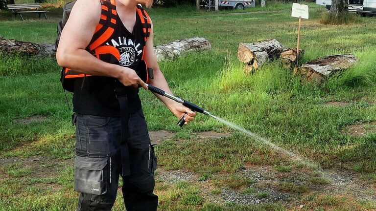 Hohe Waldbrandgefahr: Mitarbeitende des Karlsruher Forstamtes tragen jetzt Löschrucksäcke
