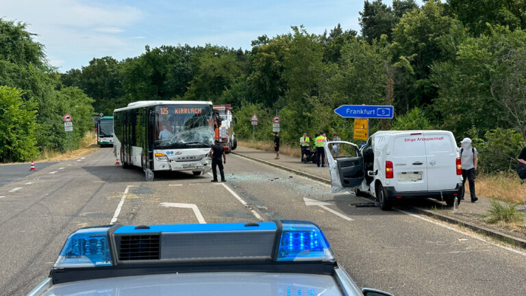 Bei einem Verkehrsunfall zwischen einem Linienbus und einem Kleintransporter auf der Landesstraße 556 bei Forst wurden am Montag, 19. Juni 2023, neun Personen verletzt. Für die Dauer der Unfallaufnahme und zur Bergung wurde die L556 im Bereich gesperrt.