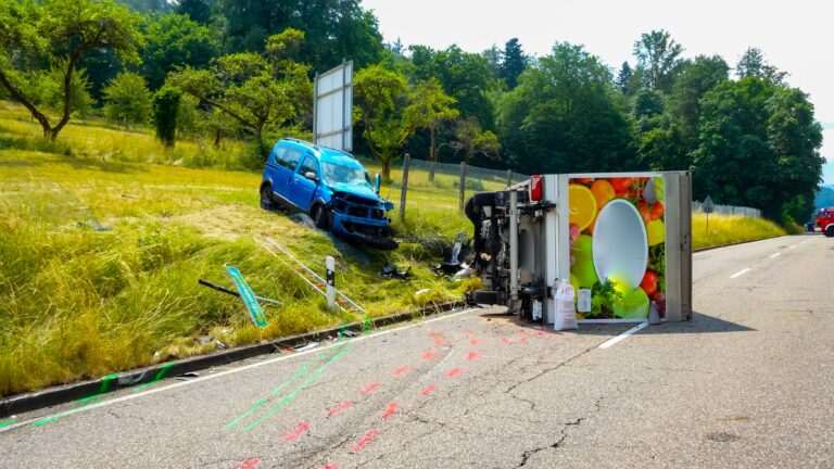 Eine 27-jährige Autofahrerin verlor am Samstag, 01. Juli 2023, gegen 2:00 Uhr auf der A5 die Kontrolle über ihr Fahrzeug und überschlug sich zweifach. Sie zog sich leichte Verletzungen zu. An ihrem Auto entstand ein Schaden von mehreren tausend Euro.