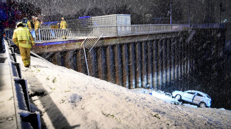 Die beiden konnten sich selbst befreien. Sie seien mit ihrem Auto sehr wahrscheinlich zu schnell unterwegs gewesen. Die Feuerwehr zog das Fahrzeug mithilfe eines Krans wieder nach oben auf die Straße.