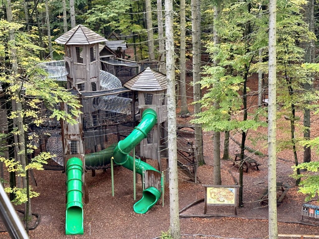 Direkt am Baumwipfelpfad auf dem Sommerberg gibt es einen großen Kinderspielplatz. Das Abenteuerland bietet, neben den Klassikern, wie Schaukel, Sandkasten und Rutsche auch ausgefallenes. So gibt es ein riesiges Lufttrampolin, eine Seilbahn und mehrere Kletterstationen.