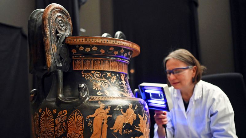 Der Antikenagent von Großherzog Leopold von Baden hatte die 1,23 Meter hohe getöpferte Prachtvase aus dem italienischen Ort Ruvo in Apulien im 19. Jahrhundert für die staatliche Antikenkollektion gekauft. Sie sei also legal in Karlsruhe, betonte Kuratorin Susanne Erbelding. Auf schwarzem Grund in bräunlichen Tönen gemalt zeigt sie Szenen der Unterwelt: «Was Menschen nach dem Tod passieren könnte.»