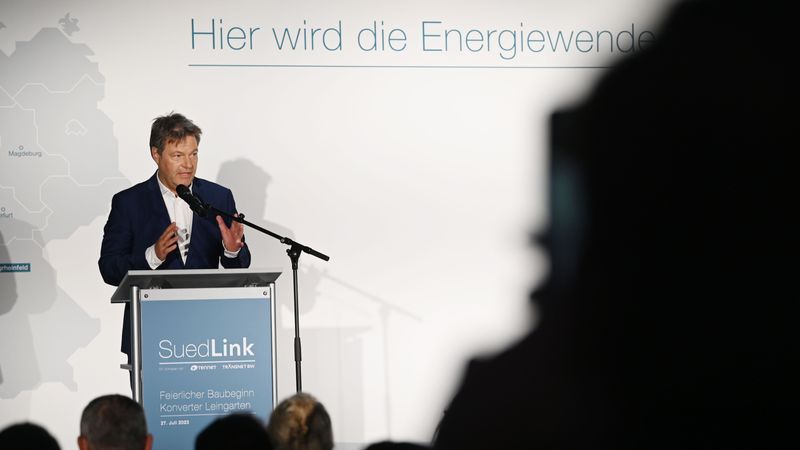 Der Bau der geplanten Nord-Süd-Stromtrasse Suedlink kommt voran: Bundeswirtschaftsminister Robert Habeck (Grüne) gab am Donnerstag im baden-württembergischen Leingarten mit dem Übertragungsnetzgebetreiber TransnetBW den Startschuss für den Bau des ersten von vier Konvertern für die Leitung, der 2026 in Betrieb gehen soll.
