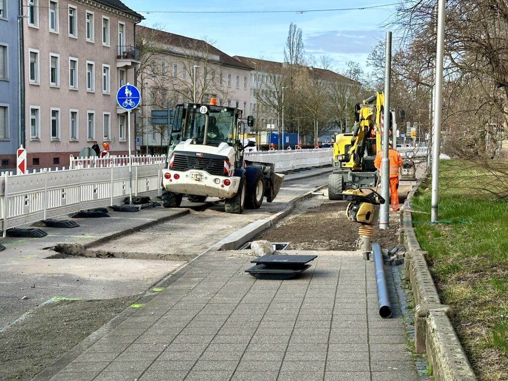 Arbeiten an der Radroute 12 in Karlsruhe. | Quelle: Melanie Hofheinz
