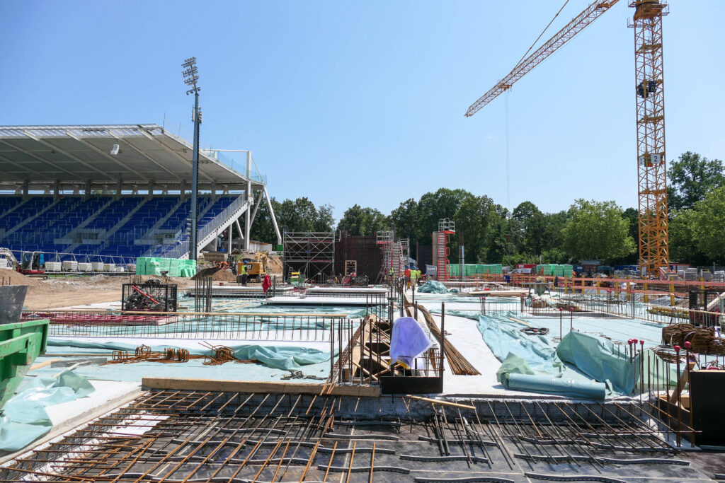 Anschließend entsteht in diesem Bereich eine neue Tribüne mit rund 5.000 Sitzplätzen – zum Teil auch für Gästefans. Da der Abbau der Tribüne erst nach Fertigstellung der Südtribüne beauftragt werden konnte und für den Rückbau ein entsprechender Vorlauf notwendig ist, wird der Abbau Ende September erfolgen.