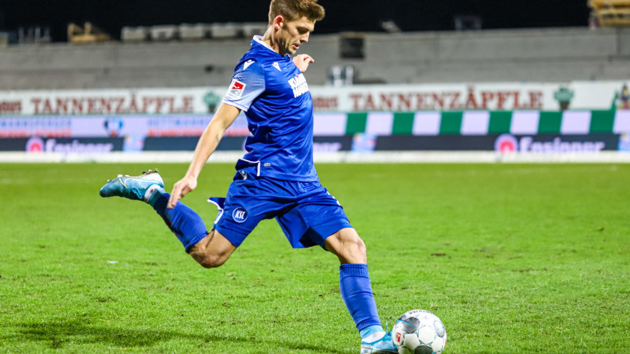 Die KSC-Startelf: Marius Gersbeck, Marco Thiede, Christoph Kobald, Daniel Gordon, Philip Heise, Jerome Gondorf, Marvin Wanitzek, Kyoung-Rok Choi, Tim Breithaupt, Marc Lorenz, Philipp Hofmann