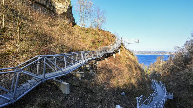 Die neue Stahlkonstruktion ersetzt den früheren Holzsteg, der tiefer am Boden durch die Schlucht geführt hatte. «So kann man garantieren, dass wir einen sicheren, begehbaren Weg haben – das ganze Jahr lang», sagte der Bürgermeister von Bodman-Ludwigshafen, Christoph Stolz (parteilos). Der alte Holzsteg sei weg. Das Material modere und verfalle schneller. Das Konstrukt wurde aus zwei Richtungen aufeinander zugebaut und in der Mitte verbunden.