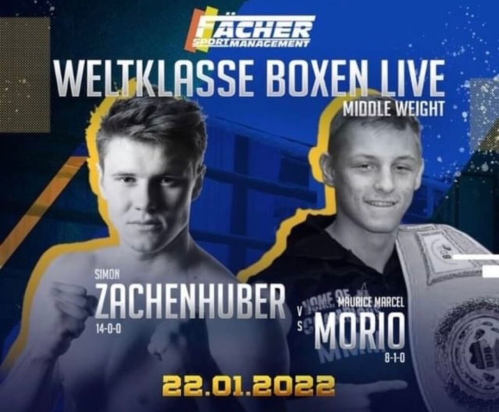 Am Samstag, 22. Januar 2022, wird ein Box-Event im Boxclub „Home of Champions“ in Eggenstein veranstaltet. Der Top-Fight des Abends wird zwischen Simon Zachenhuber und Maurice Morio, um den Titel des IBF-Juniorenweltmeisters im Mittelgewicht, stattfinden.