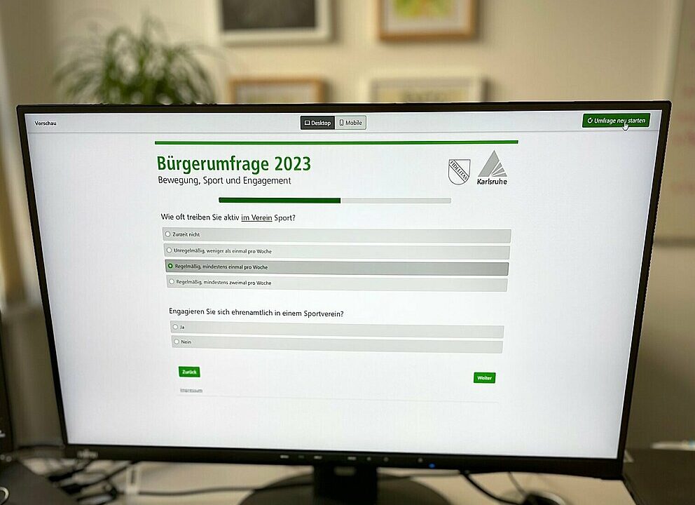 Die diesjährige Bürgerumfrage befasst sich mit den Themen Bewegung, Sport und Engagement. Wie oft und wo treiben die Karlsruherinnen und Karlsruher gewohnheitsmäßig Sport?