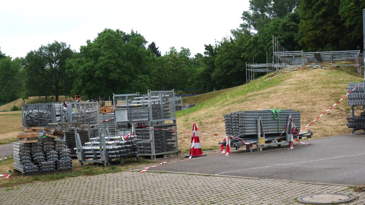 Sieben Kilometer Bauzaun, sechs Kilometer Wasserleitung und noch vieles mehr sind notwendig, damit in rund vier Wochen DAS FEST in der Günther-Klotz-Anlage stattfinden kann. Die Aufbauarbeiten für das Sommerfestival sind am 20. Juni 2022, gestartet.