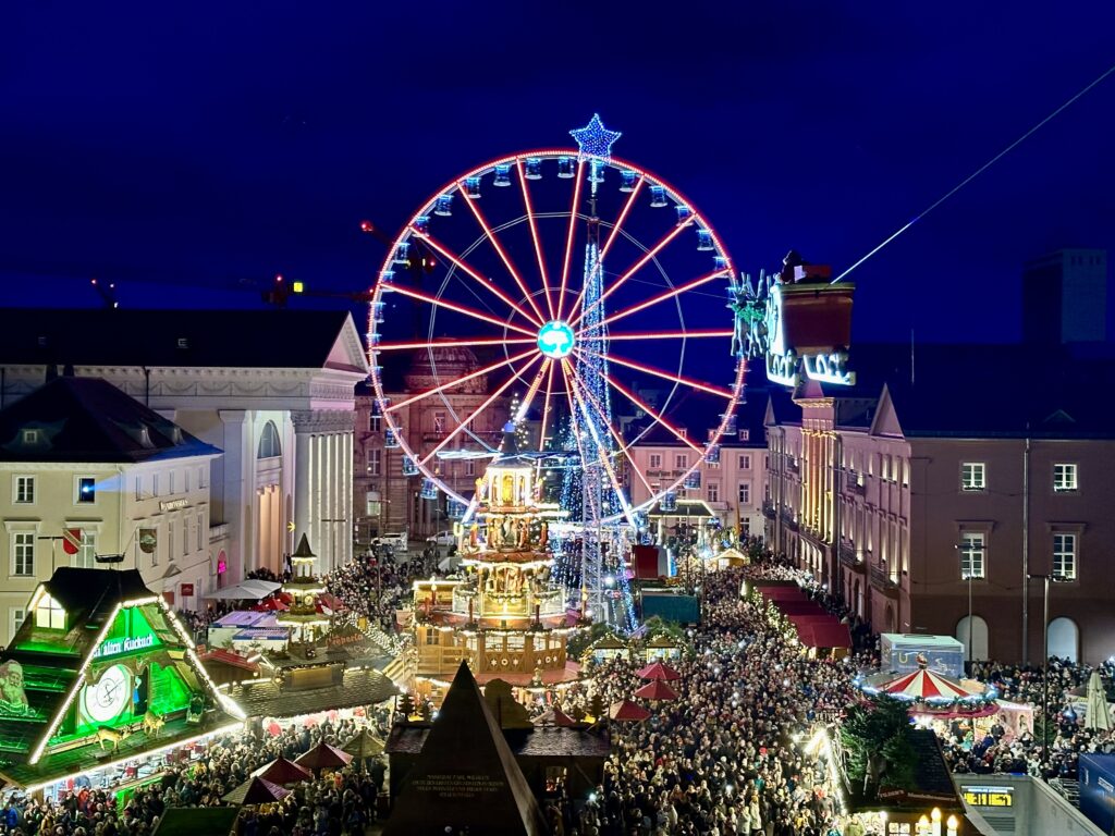 Zum zweiten Jahr in Folge schwebt der „Fliegende Weihnachtsmann“ über dem Marktplatz und nicht mehr über den Friedrichsplatz. Wie gefällt es Ihnen hier?