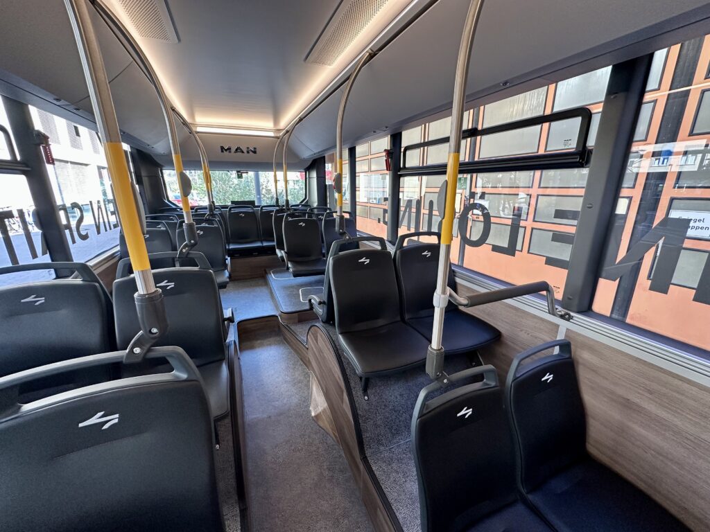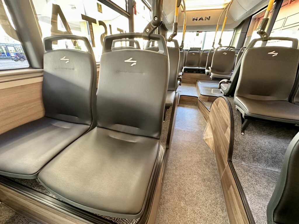 Die Bus-Sitze bestehen aus nachhaltig produziertem ELeather. | Quelle: Melanie Hofheinz