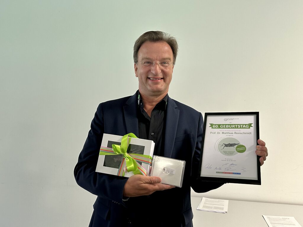 Eine besondere Heuschrecke als Geburtstagsüberraschung: Das Naturkundemuseum in Karlsruhe hat ein Insekt nach Dr. Matthias Reinschmidt benannt und dem Karlsruher Zoodirektor damit, am 28. Mai 2024, ein einzigartiges Geschenk zum 60. Geburtstag bereitet.