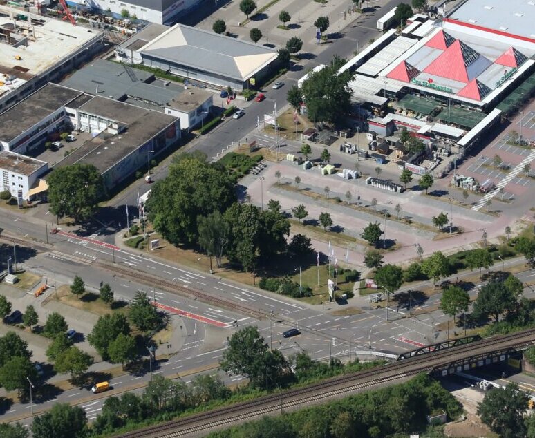 Vom Ostring kommend, wird die linke der beiden Fahrspuren eingezogen, so die Stadt. Die Verringerung der Fahrspuren soll die Übersichtlichkeit im Einmündungsbereich erhöhen, die Sichtbeziehung zwischen den Verkehrsteilnehmenden verbessern und die Gefahrensituation entschärfen.