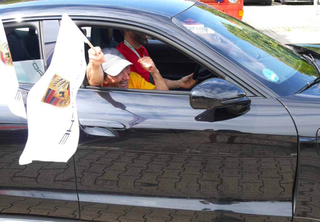 Schon vor der Abfahrt sorgte die Vorfreude für viele strahlende Gesichter bei den Co-Piloten. Und diese Freude hielt an, denn sowohl das Verlassen des Porsche-Areals, als auch die Wiederankunft wurde durch munteres Fahnenschwingen, Winken und viele glückliche sowie dankbare Gesichter der Co-Piloten und Besucher begleitet.
