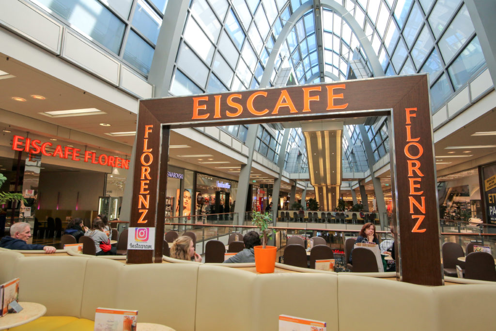 Zu finden ist das Eiscafé Florenz im 1. Obergeschoss des Einkaufszentrums, direkt an der Shoppingpassage. Über 40 Eissorten gibt es hier zu entdecken. Das Eis wird nach italienischer Rezeptur und hochwertigen Zutaten hergestellt.