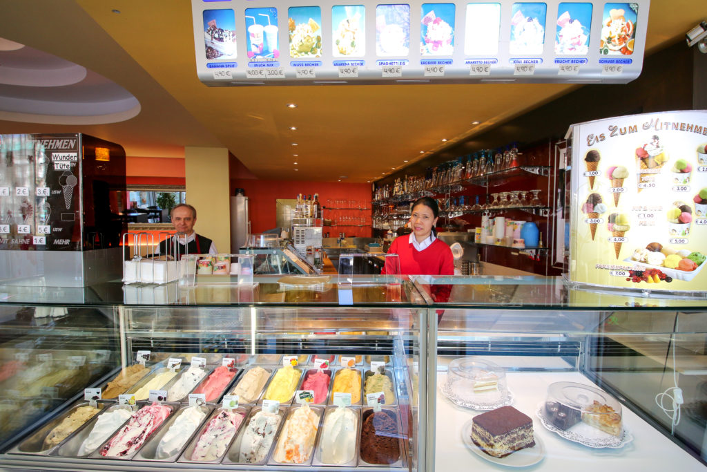 Daher werden auch nur regionale Produkte sowie natürliche Zutaten aus Italien bei der Herstellung verwendet. Das Eiscafé ist stolz, nach über 30 Jahren Berufserfahrung sein „Gelato“ auch heute noch nach original-italienischen Rezepturen herstellen zu können.
