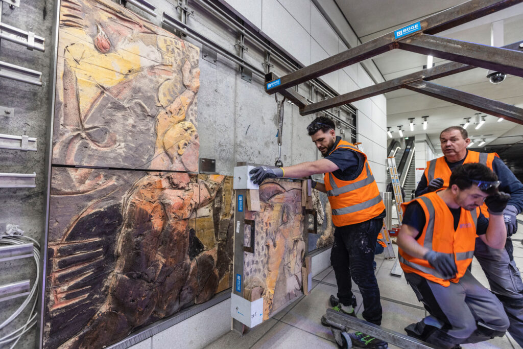 Das Kunstwerk „Genesis“ wird angebracht.| Quelle: Fabry