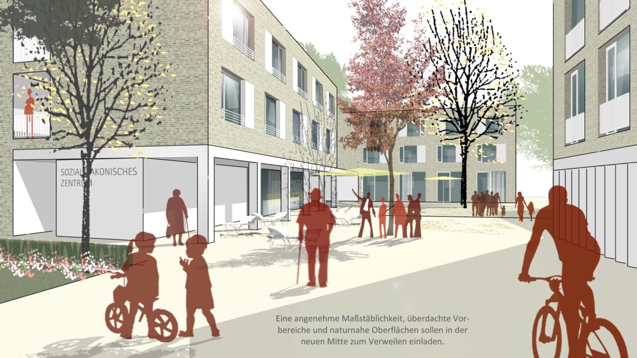 Die zur Verfügung stehenden rund 7.000 Quadratmeter sollen in der Planung mit einer Kindertagesstätte, Gemeinde- und Beratungsräumen, einem stationären Alten- und Pflegeheim und einer Tagespflegeeinrichtung, sowie ergänzendem neuen, bezahlbaren Wohnraum attraktiv gestaltet werden.