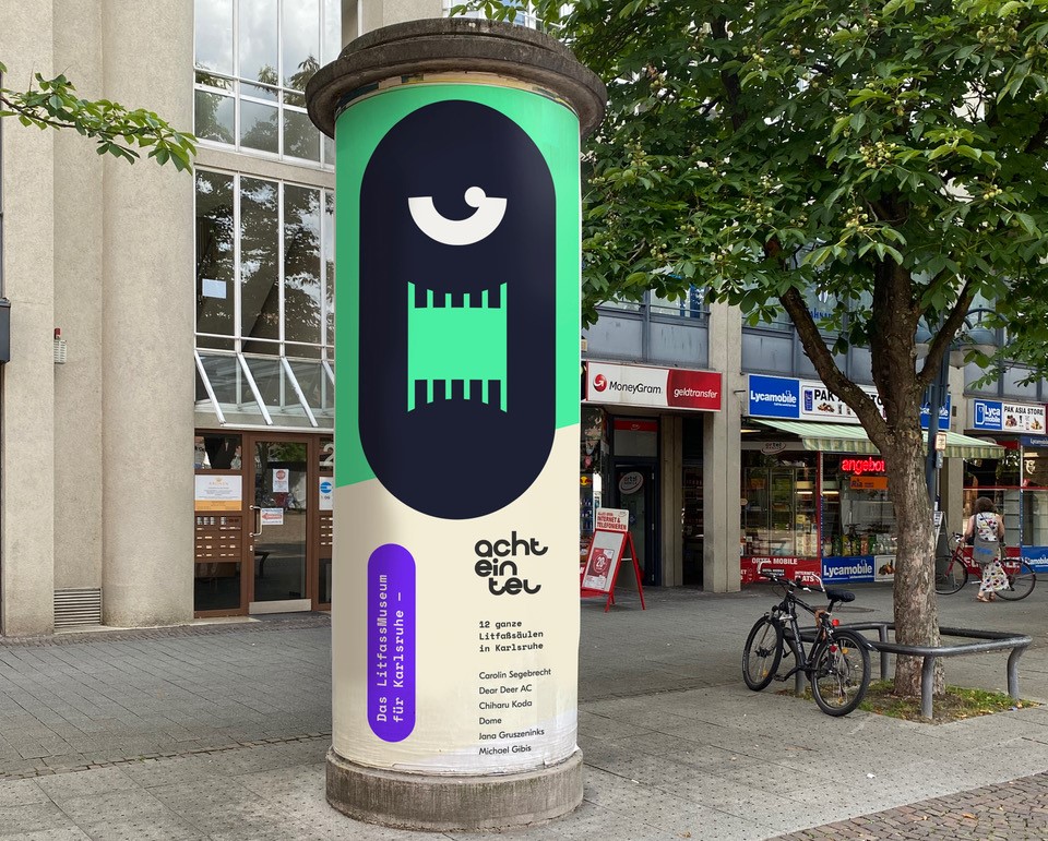 Auf zwölf Litfaßsäulen in der Fächerstadt werden vom 23. Juli bis zum 02. August 2021, Werke von verschiedenen Künstlern ausgestellt. Es ist die erste Ausstellung des achteintel–LitfassMuseum. Die Aktion wurde als Crowdfunding Projekt finanziert.