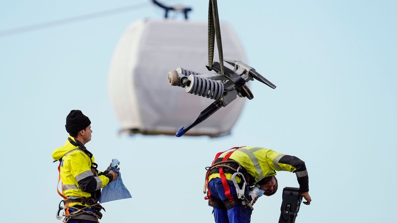Eine Seilbahn soll die beiden Teile der Bundesgartenschau 2023 in Mannheim miteinander verbinden – die ersten von insgesamt 64 Gondeln sind nun eingehängt worden.