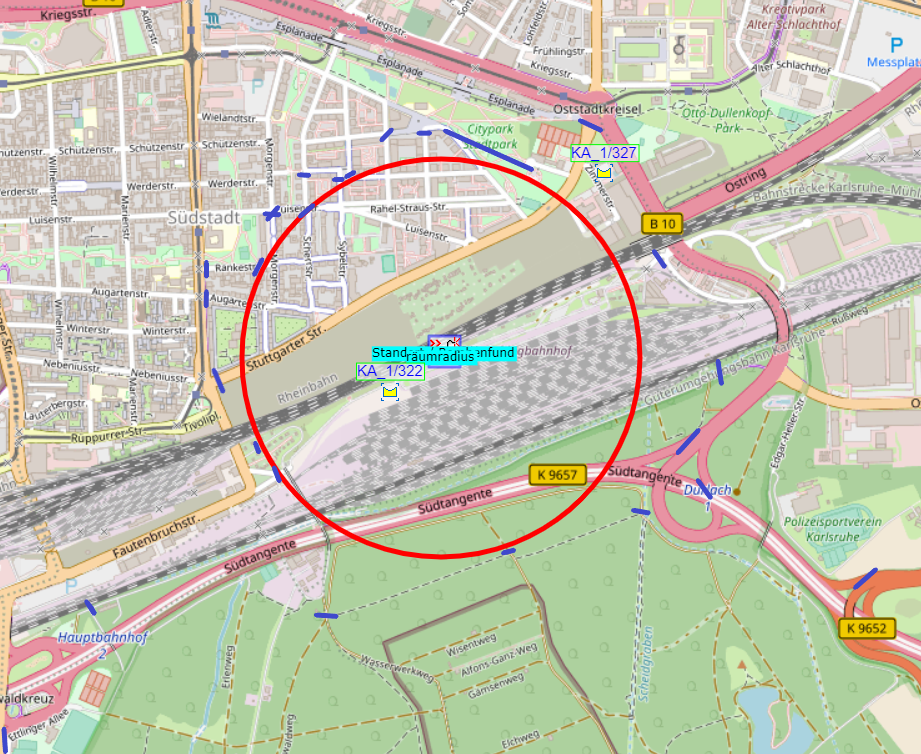 Wie die Stadt Karlsruhe mitteilt, kommt es wegen der Entschärfung einer Fliegerbombe am Dienstag, 15. November 2022, in Karlsruhe im Bereich der Südstadt zu deutlichen Beeinträchtigungen. Auf einer Baustelle im Bereich des Güterbahnhofs nahe Stuttgarter Straße wurde eine Fliegerbombe aus dem Zweiten Weltkrieg gefunden.