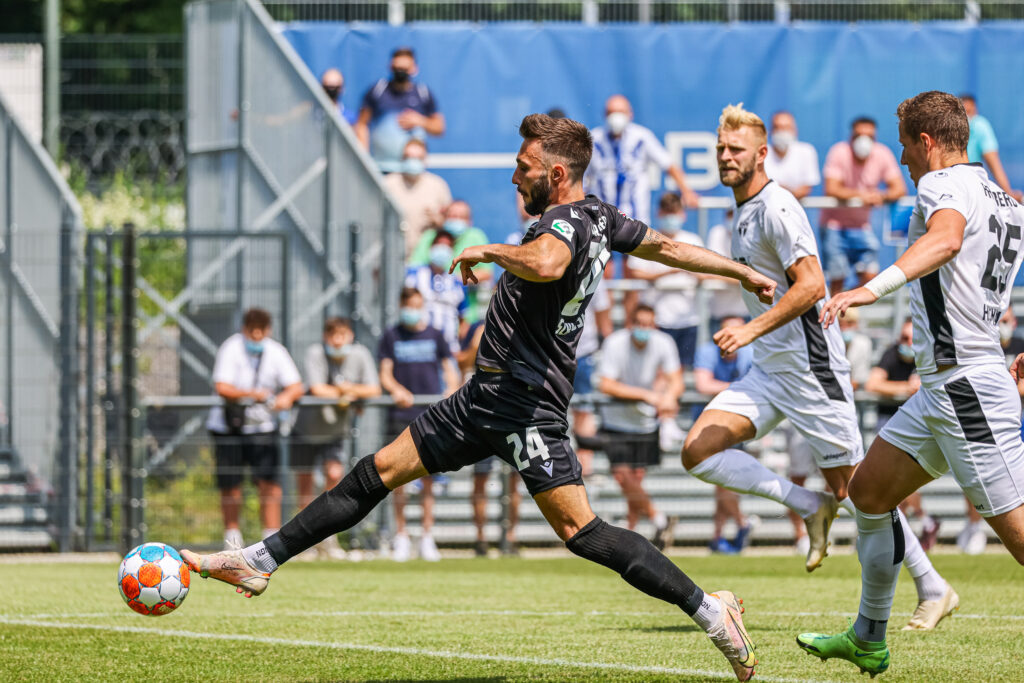 Fabian Schleusener (KSC 24) bei seiner ersten Aktion vor dem Freiberger Tor.