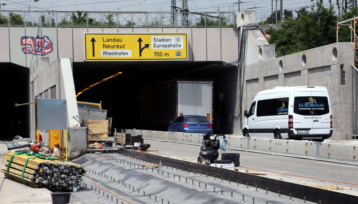 Wie die Stadt Karlsruhe mitteilt, werden im Rahmen der Modernisierung des Edeltrudtunnels in der nächsten Woche neue Verkehrszeichenbrücken entlang der Südtangente aufgebaut. Hierbei kommt es zu kurzzeitigen Einschränkungen für den Verkehr.
