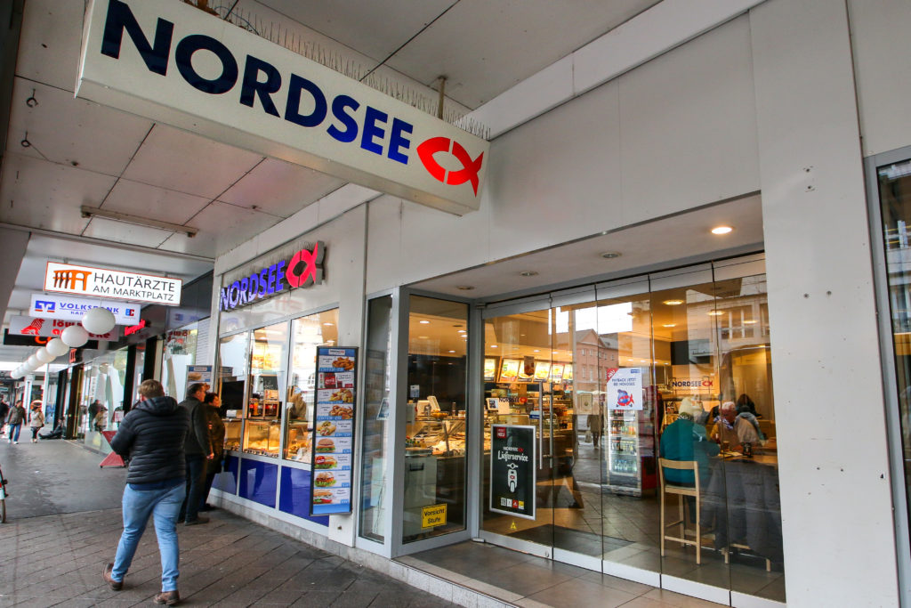 Die deutsche Schnellrestaurant-Kette mit Schwerpunkt Fisch und Meeresfrüchte namens Nordsee wurde1896 in Bremen als Deutsche Dampffischerei-Gesellschaft Nordsee gegründet. Knapp 400 Standorte zählt das Unternehmen derzeit weltweit. Drei Filialen sind in der Fächerstadt stationiert und sind in der Kaiserstraße, dem ECE Center und am Europaplatz zu finden.