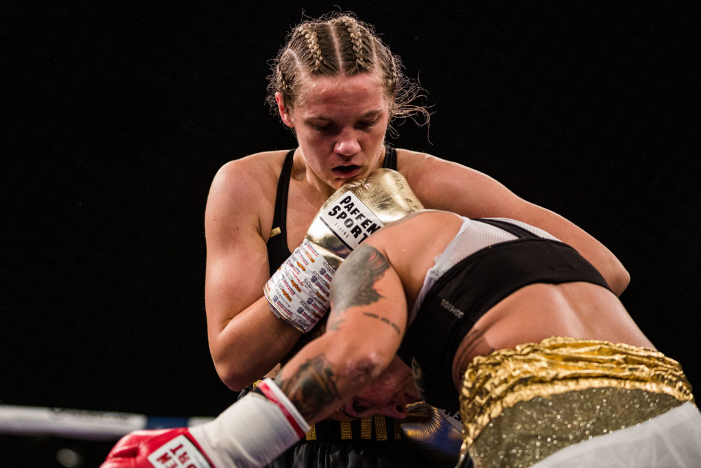 Boxtalent Sophie Alisch absolvierte ihren Kampf auch erfolgreich und verdiente sich den vierten Sieg im vierten Profikampf. Die 17-jährige Berlinerin dominierte ihr Federgewichtsduell über sechs Runden gegen Vanesa Caballero aus Spanien, so dass am Ende ein eindeutiges Punkteurteil (60-54, 60-54, 60-54) stand. „Vanesa Caballero hat gut mitgehalten und war eine taffe Gegnerin, vielleicht meine bislang stärkste“, so Sophie Alisch nach dem Kampf.