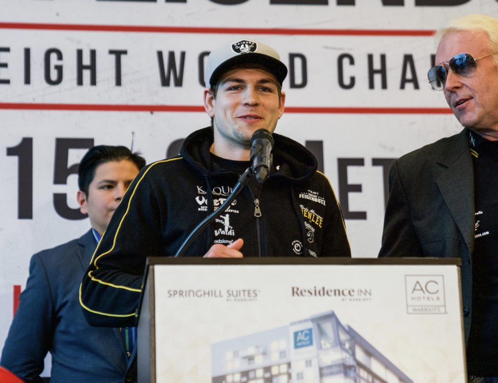 Bei der Pressekonferenz am Donnerstag, 13. Februar 2020 standen sich die beiden Kontrahenten erstmals von Angesicht zu Angesicht gegenüber. „Schon als Kind hatte ich diesen Traum, als Weltmeister in Nashville kämpfen zu können und meinen Titel in der Bridgestone Arena zu verteidigen“, sagte Caleb Plant während des Pressetermins. Zudem begann der US-Amerikaner mit ersten Sticheleien gegen Feigenbutz: „Jeder der mich kennt weiß, dass ich dafür so lange die Luft unter Wasser anhalten werde, wie es nötig ist. Vincent kann das nicht, er musste es nie. Er hat eine riesige Aufgabe zu bewältigen (…). Wir hatten exzellente Sparringspartner, so dass der Kampf eine leichte Aufgabe sein wird. Ich weiß, was mich erwartet!“