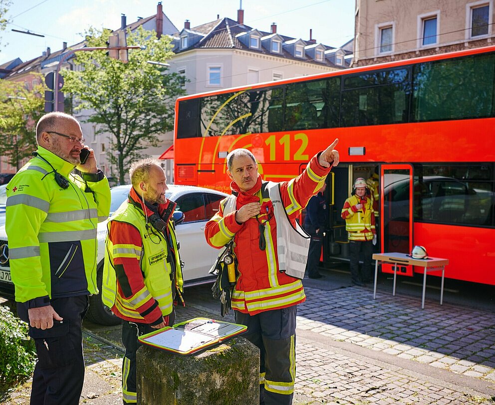 Ein zentraler Schwerpunkt der Übung lag auf der effektiven Kommunikation zwischen den Einsatzkräften sowie der Lagedarstellung: „In einer Notfallsituation ist eine klare und präzise Kommunikation von entscheidender Bedeutung“, betont Florian Geldner, Leiter der Feuerwehr Karlsruhe.