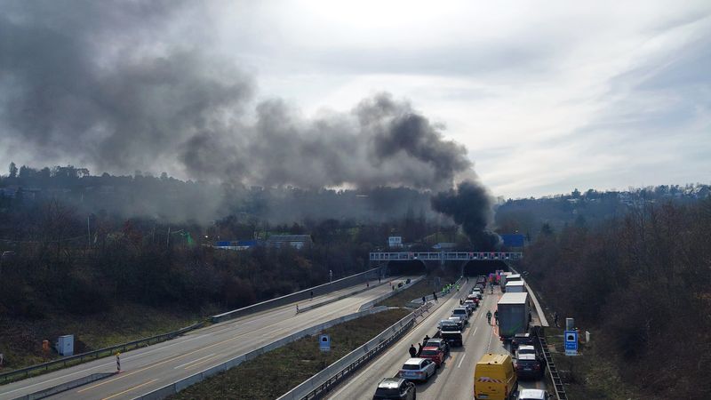 News Feuer und Rauch in Autobahn-Tunnel entlang der A81