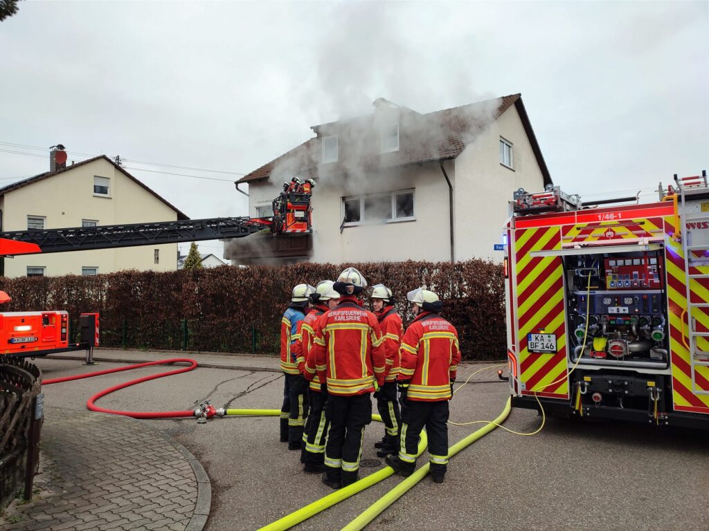 Die Berufsfeuerwehr Karlsruhe konnte mithilfe der Freiwilligen Feuerwehren aus Stupferich und Wettersbach den Brand mit zwei Trupps unter Atemschutz schnell unter Kontrolle bringen.