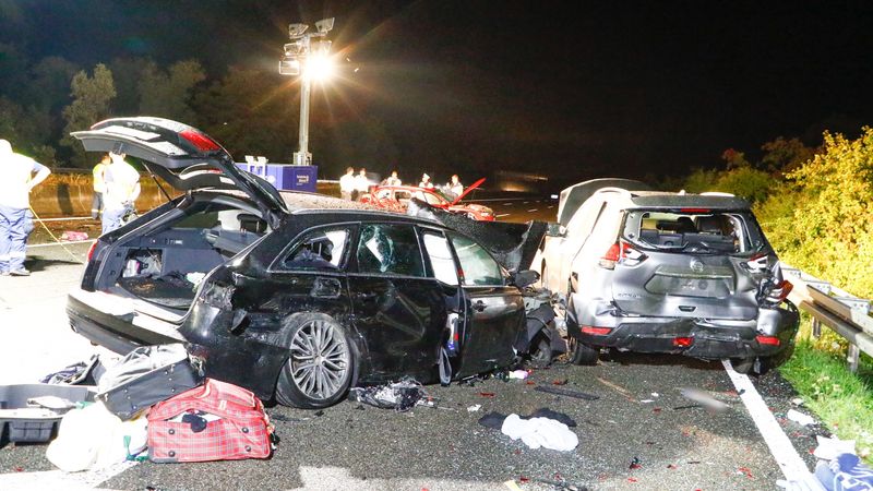 Sechs teils schwer verletzte Menschen im Alter zwischen 5 und 51 Jahren kamen in umliegende Krankenhäuser. Der genaue Unfallhergang war den Angaben nach zunächst unklar. Ein Gutachter habe noch in der Nacht zusammen mit Experten der Verkehrspolizei mit der Rekonstruktion der Ereignisse begonnen. Die A5 war nach dem Unfall in Richtung Karlsruhe zunächst gesperrt.